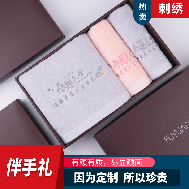 福缘爱定制纯棉毛巾加刺绣logo三八毛巾礼盒套装节日礼品企业.