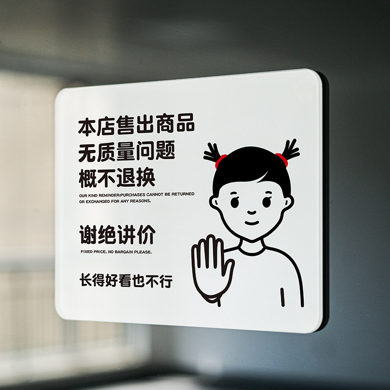 本店售出商品概不退换提示牌一经售出不退不换指谢绝议价概不讲价热门设计联盟服务商
