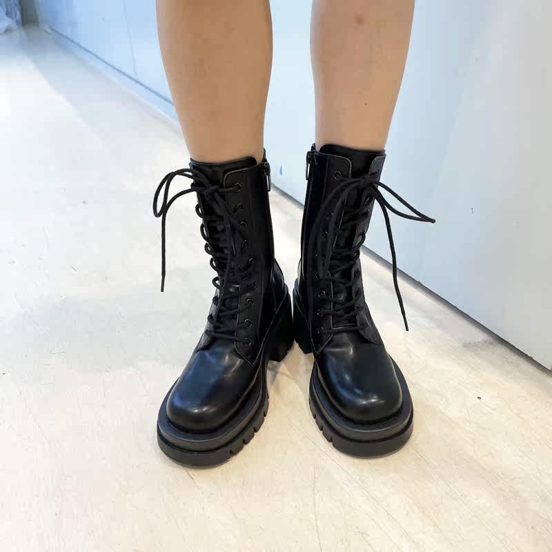 韩小爱厚底粗高跟系带靴短靴女韩国2021秋新款酷飒科技工装风热门设计联盟服务商