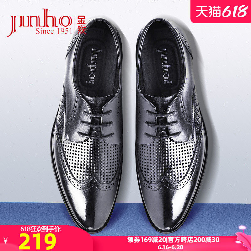 金猴新款春季布洛克雕花透气商务舒适皮鞋透气镂空商务休闲皮凉鞋热门设计联盟服务商