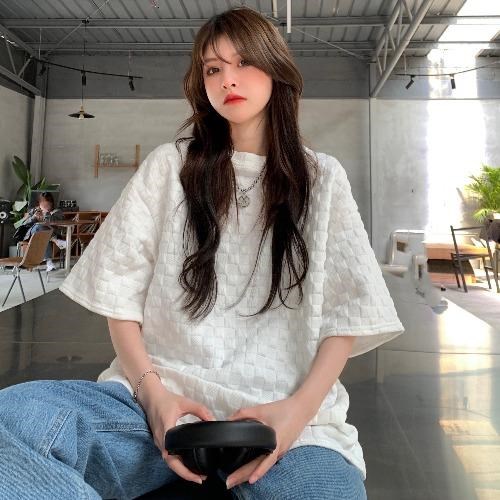 云翔四海T恤(专柜正品)女休闲百搭网红设计感宽松韩版短袖拼欢热门设计联盟服务商