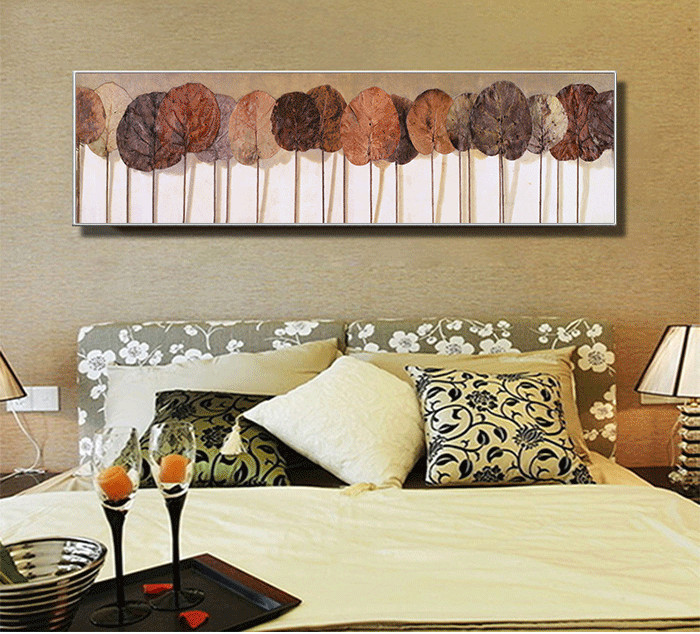 205轻奢卧室床头装饰画简约客厅背景墙壁画树叶美式主卧横幅挂画热门设计联盟服务商