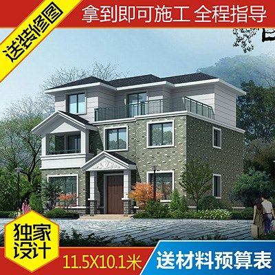三层别墅施工图建筑水电齐全设计图纸新农村自建房屋效果图热门设计联盟服务商