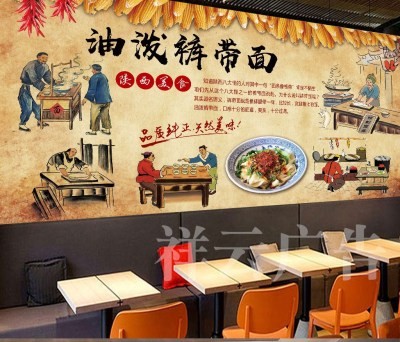 油泼面海报贴纸贴画裤带面广告贴纸防水自粘陕西面馆背景墙装饰画热门设计联盟服务商
