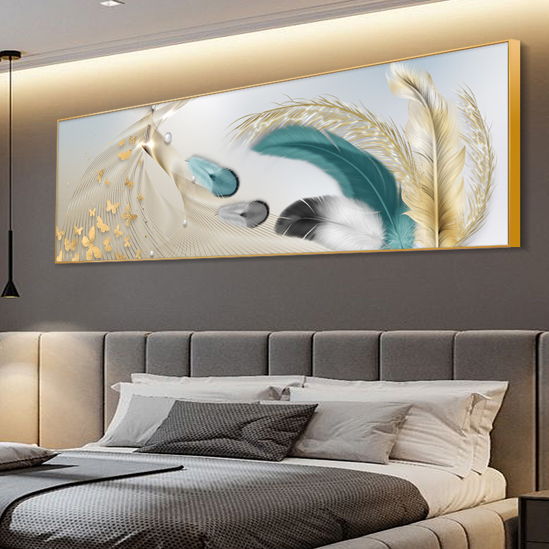 现代轻奢风羽毛卧室装饰画客厅主卧床头挂画房间温馨横幅大气壁。热门设计联盟服务商