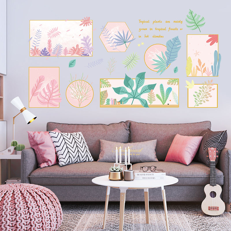 新室装饰墙贴纸相框背景墙壁贴画客厅电视海报纸自粘绿Z植创意个热门设计联盟服务商