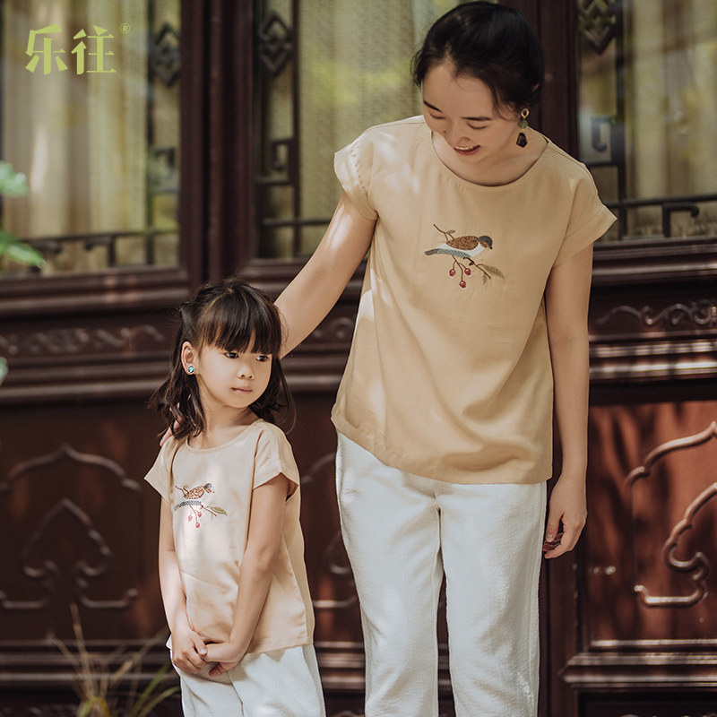 小乐往612课天丝短袖休闲文艺上衣设计感亲子装母女装海边度假热门设计联盟服务商