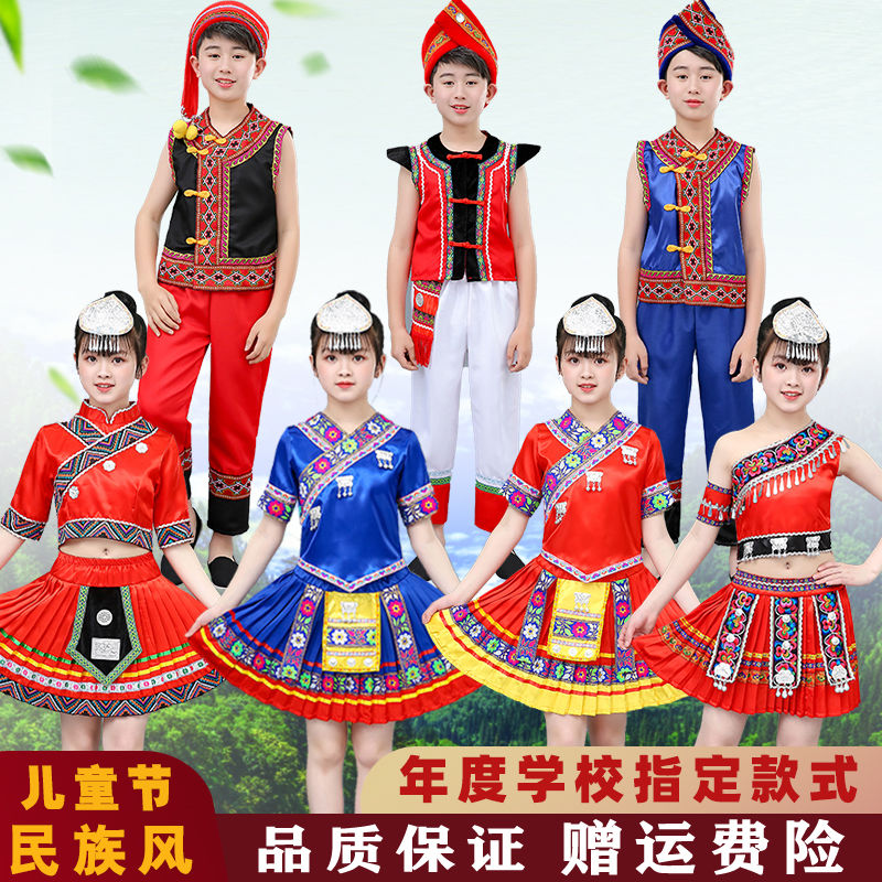 新款六一儿童少数民族服装壮族彝族演出服葫芦丝苗族舞蹈表演服饰热门设计联盟服务商