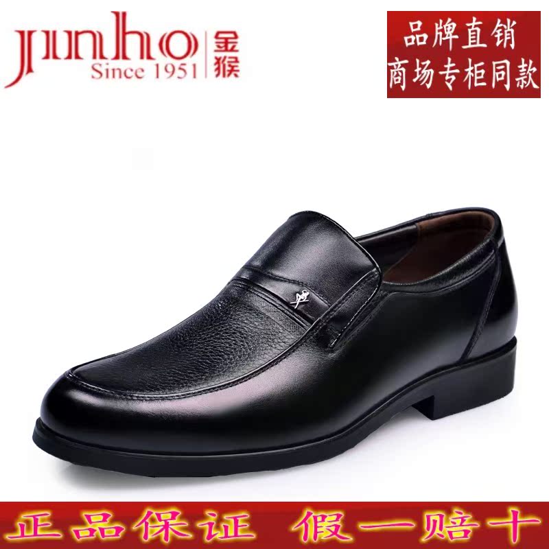 正品金猴男春秋透气头层牛皮真皮圆头套脚商务休闲正装单鞋爸爸鞋热门设计联盟服务商